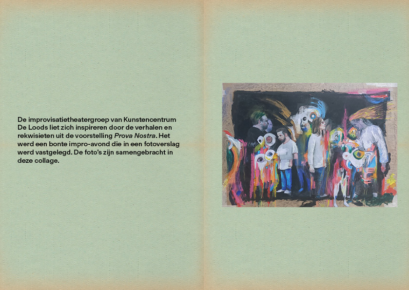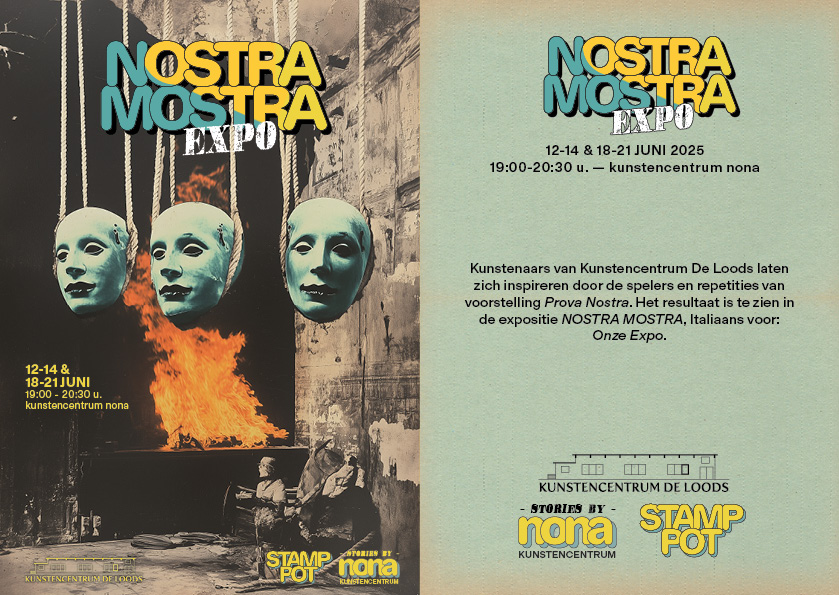 Kunstenaars van Kunstencentrum De Loods laten zich inspireren door de spelers en repetities van Prova Nostra. Het resultaat is te zien in de expositie NOSTRA MOSTRA, Italiaans voor: Onze Expo.